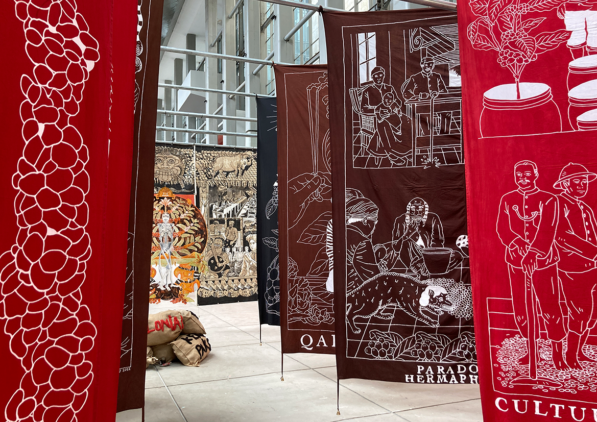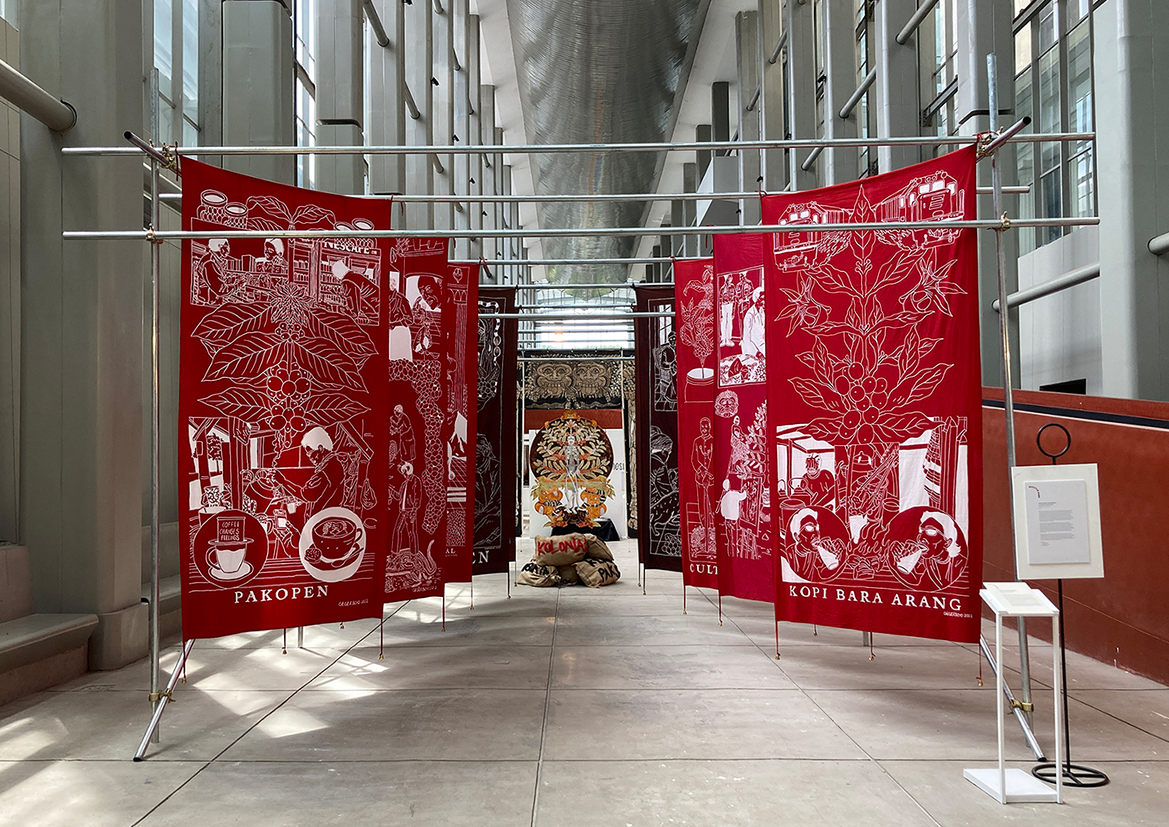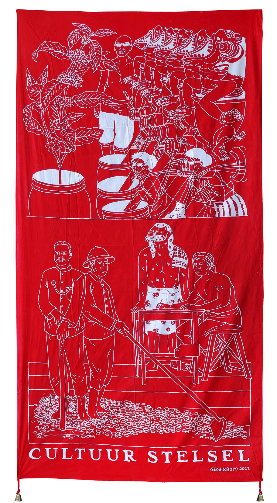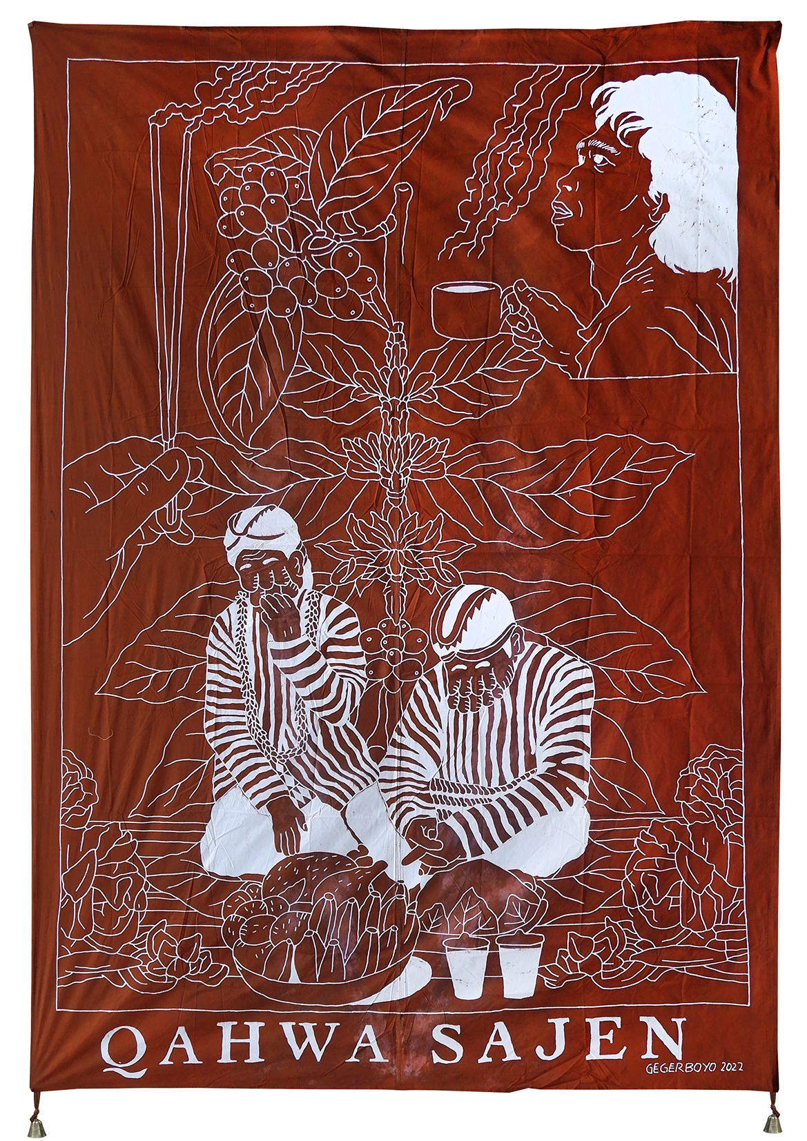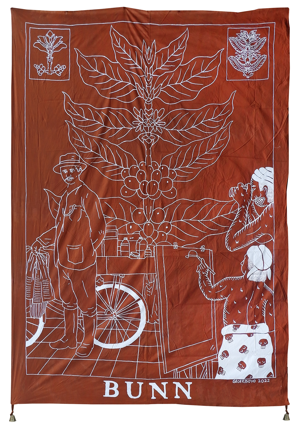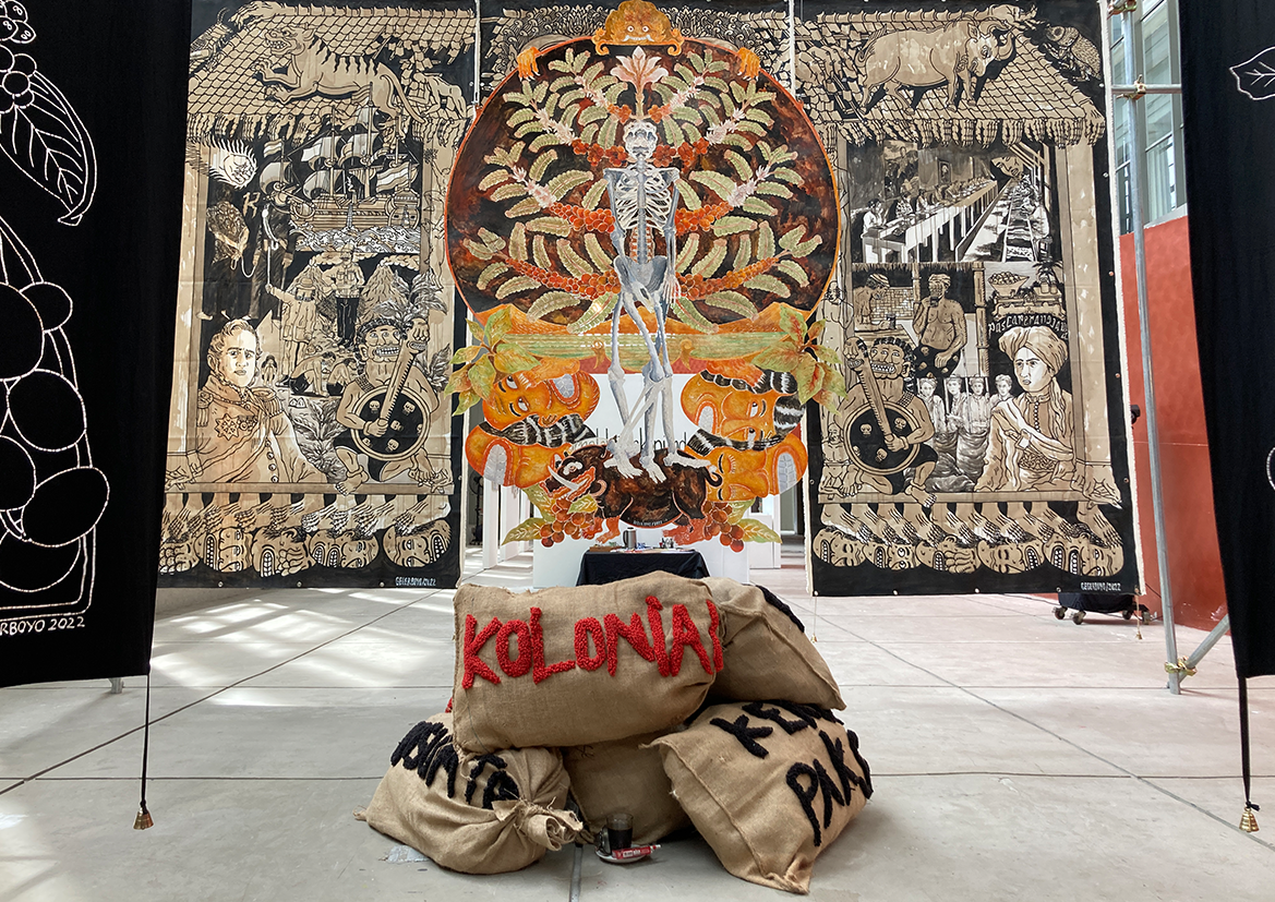 Each piece of Gegerboyo’s work tells of one story and the circumstances in which the coffee is written is at. The bell hanging on each piece is a symbol of time. Broadly speaking, Gegerboyo’s work discusses about track record and journey of the coffee plant with all its intrigue, from myths, history, to modern life.