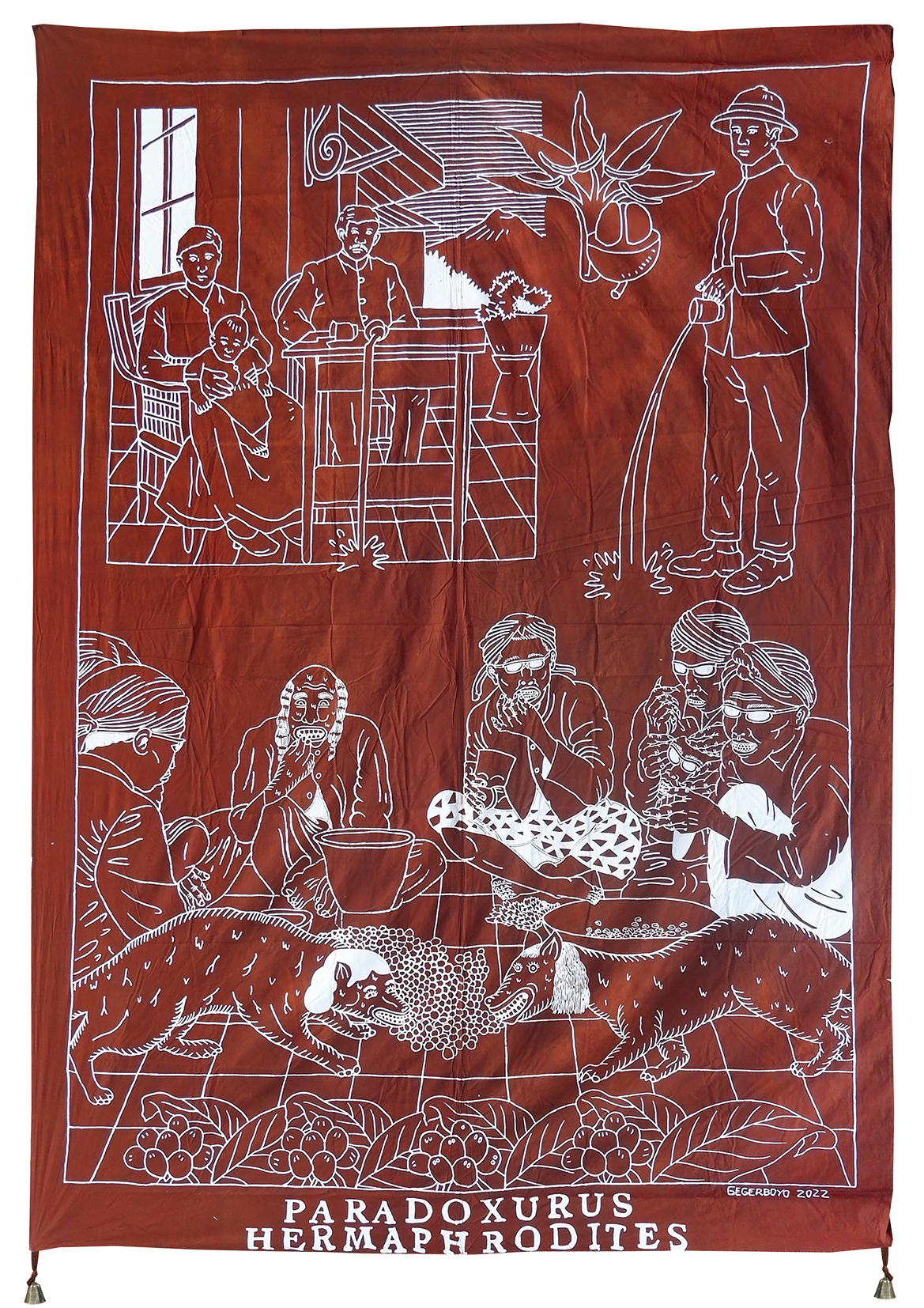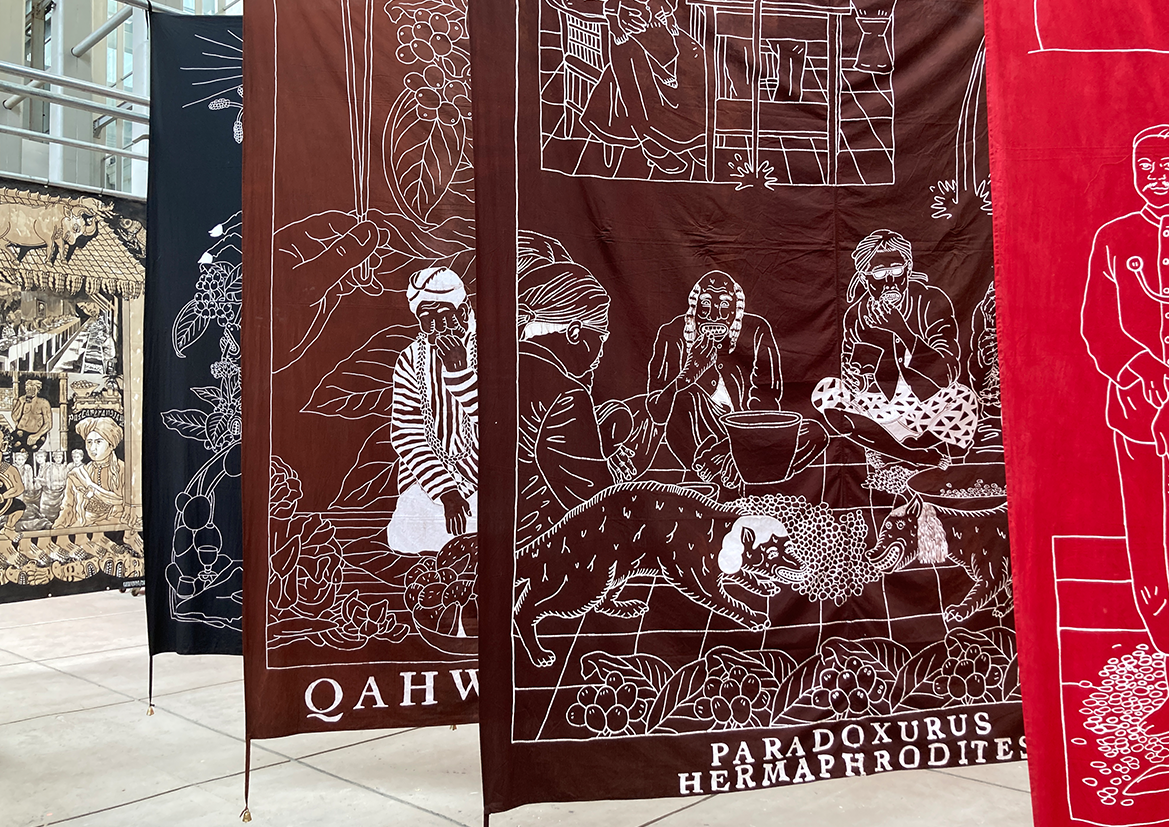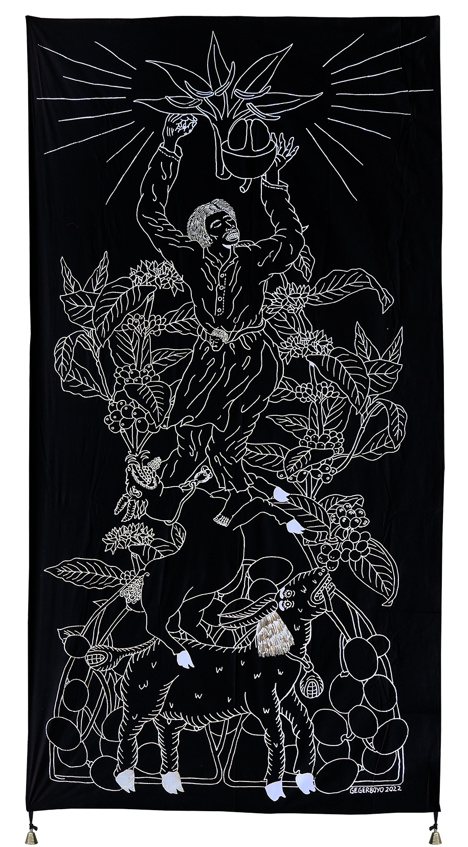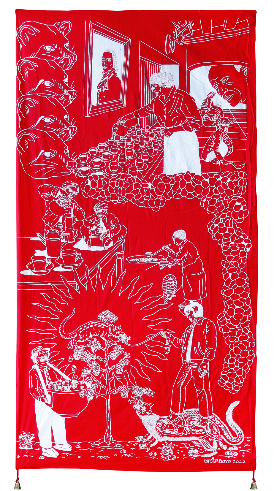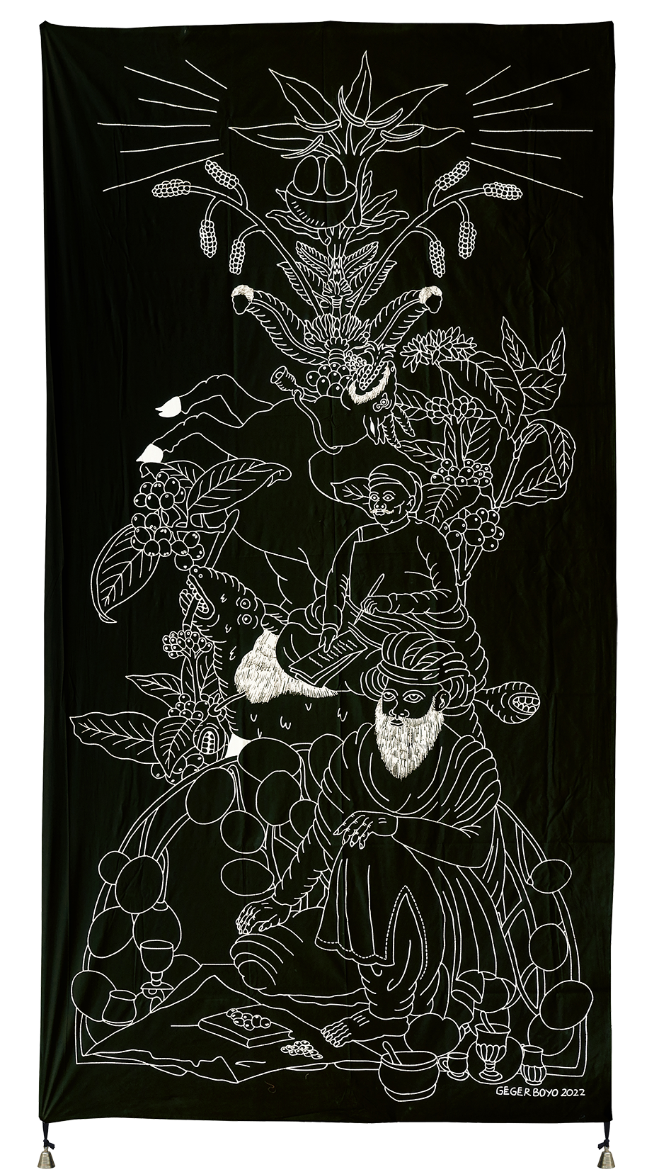 Each piece of Gegerboyo’s work tells of one story and the circumstances in which the coffee is written is at. The bell hanging on each piece is a symbol of time. Broadly speaking, Gegerboyo’s work discusses about track record and journey of the coffee plant with all its intrigue, from myths, history, to modern life.