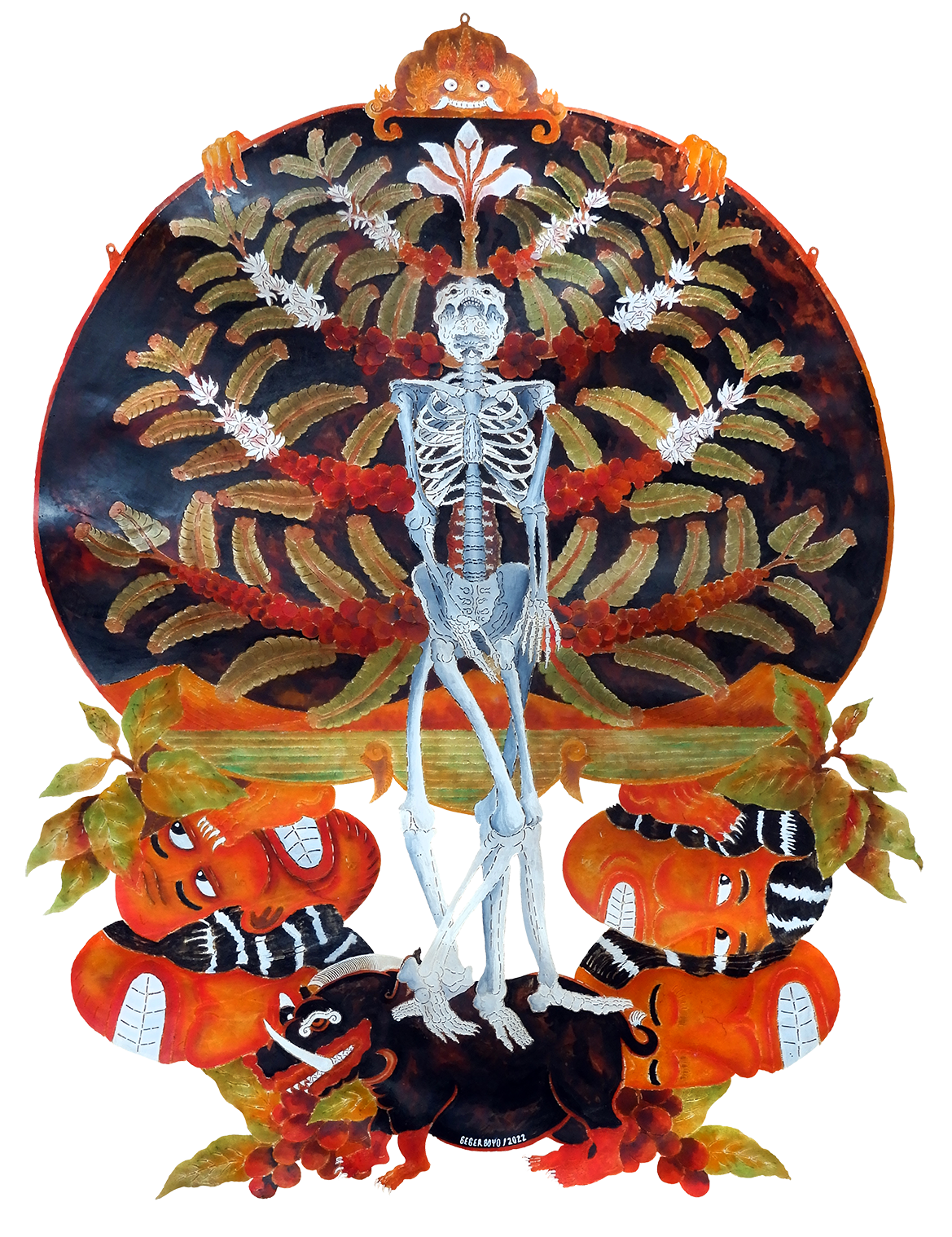 Setiap lembar karya Gegerboyo menceritakan satu kejadian dan keadaan dimana kopi berada. Lonceng yang tergantung di setiap karya adalah simbol penanda waktu. Secara garis besar karya Gegerboyo membahas tentang rekam jejak perjalanan tanaman kopi dengan segala intriknya, mulai dari cerita mitos, sejarah, sampai kehidupan modern.