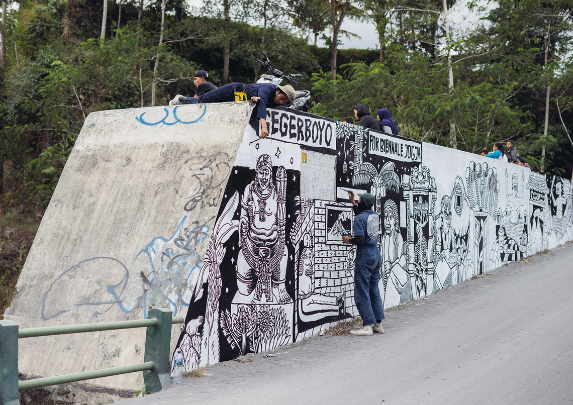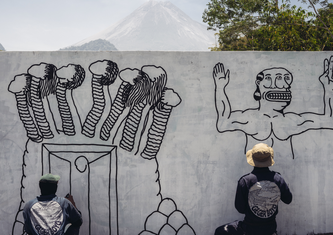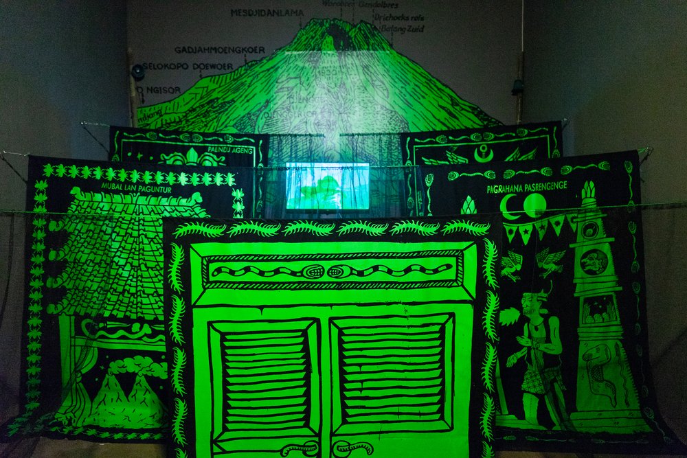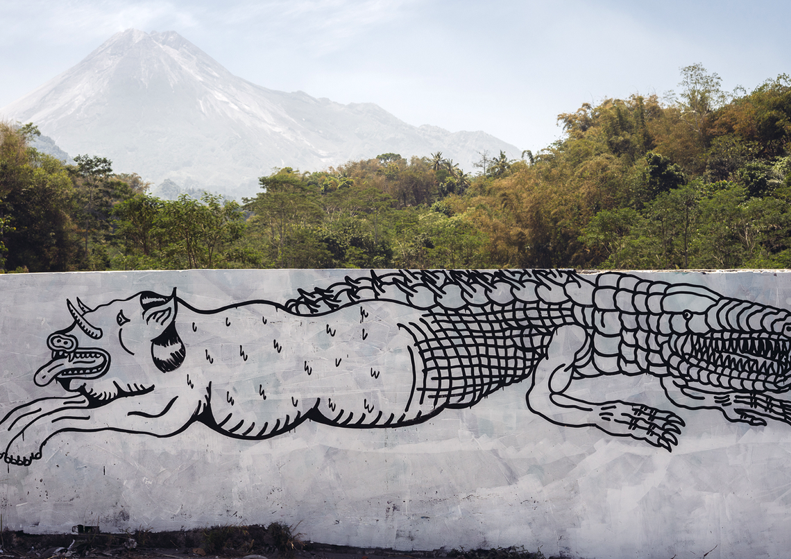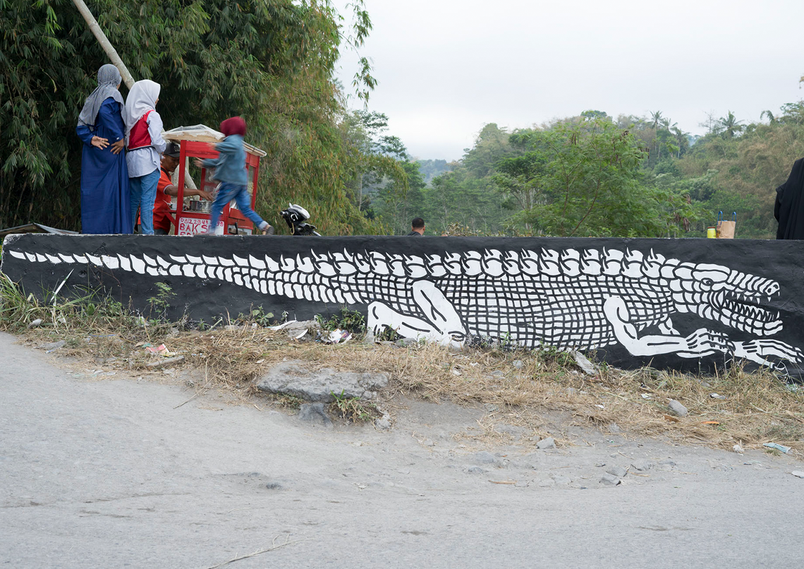 Starting from our interest in discussing Geger Boyo (pronounced: gègèr boyo), the hilly area that resembles a crocodile’s back near Mount Merapi, we were fascinated by the idea of creating artworks about gates or shields. The concept of gates or shields always came up during our brainstorming sessions or trips to Merapi to gather information. Initially, we expected to find things related to how people on the outskirts understand nature or Javanese cosmology. But we noticed that there was a shift in meaning happening. This change was clear, marked by changes in the environment and social life around Merapi.