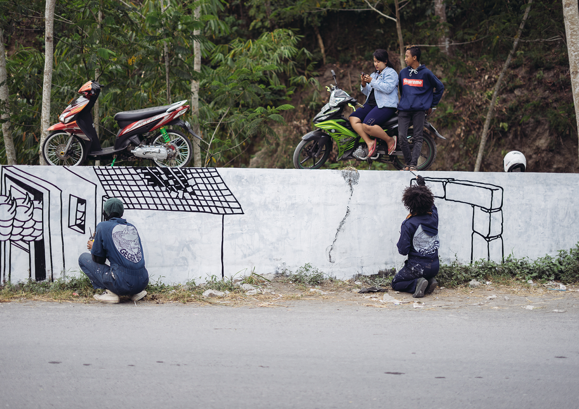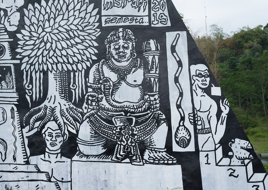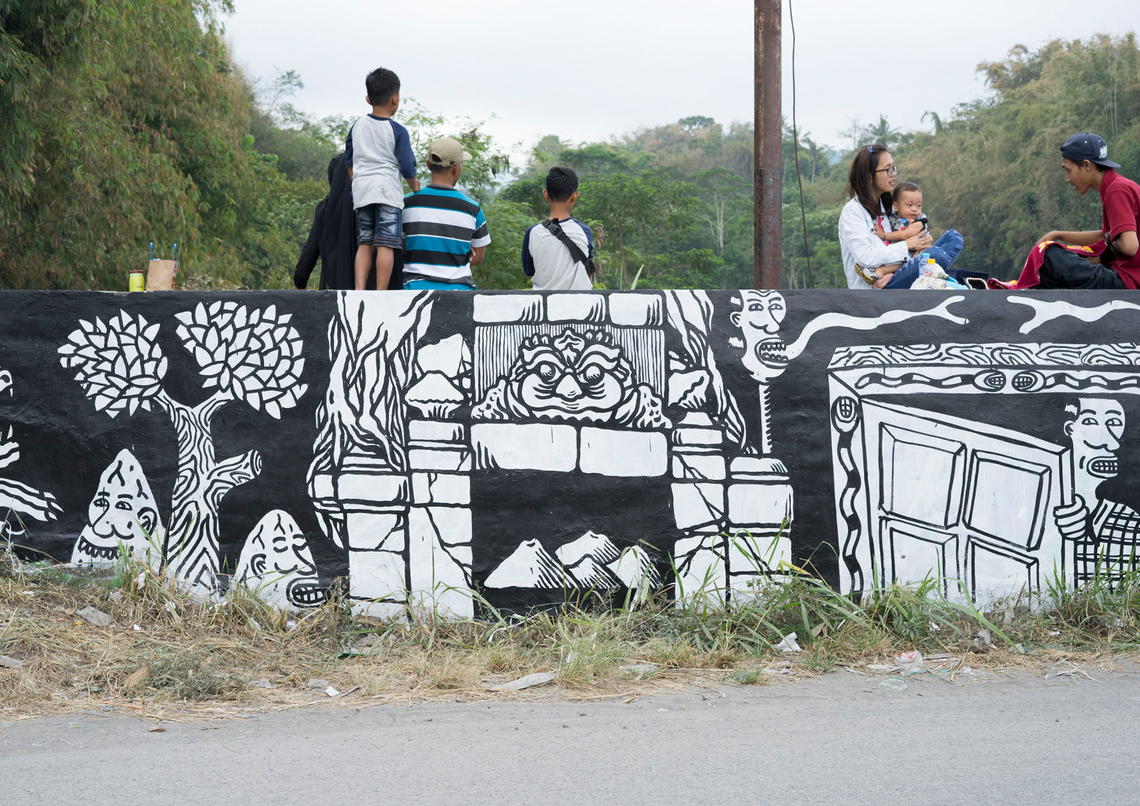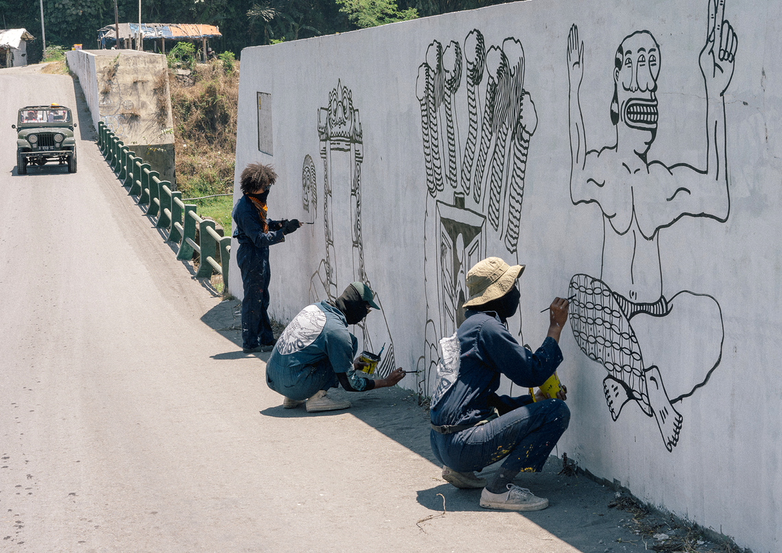 Starting from our interest in discussing Geger Boyo (pronounced: gègèr boyo), the hilly area that resembles a crocodile’s back near Mount Merapi, we were fascinated by the idea of creating artworks about gates or shields. The concept of gates or shields always came up during our brainstorming sessions or trips to Merapi to gather information. Initially, we expected to find things related to how people on the outskirts understand nature or Javanese cosmology. But we noticed that there was a shift in meaning happening. This change was clear, marked by changes in the environment and social life around Merapi.