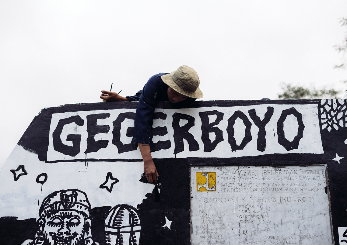 A gate is a place where you enter or leave a closed area that is surrounded by a fence or wall. Clearly, the culture around Merapi is currently in the middle of such a gate. Some still believe strongly in Merapi and its mystical qualities, while others are starting to doubt these beliefs. We find ourselves in between these two sides, as if standing at the center of a gate. For a long time, Geger Boyo Hill acted like a shield, protecting the inhabited areas from the direct impact of Merapi’s eruptions. However, in 2006, the hill was destroyed during an eruption. Now, there is no longer a shield or gate to protect the residents around Mount Merapi on the southern side (Yogyakarta), both physically and visibly.