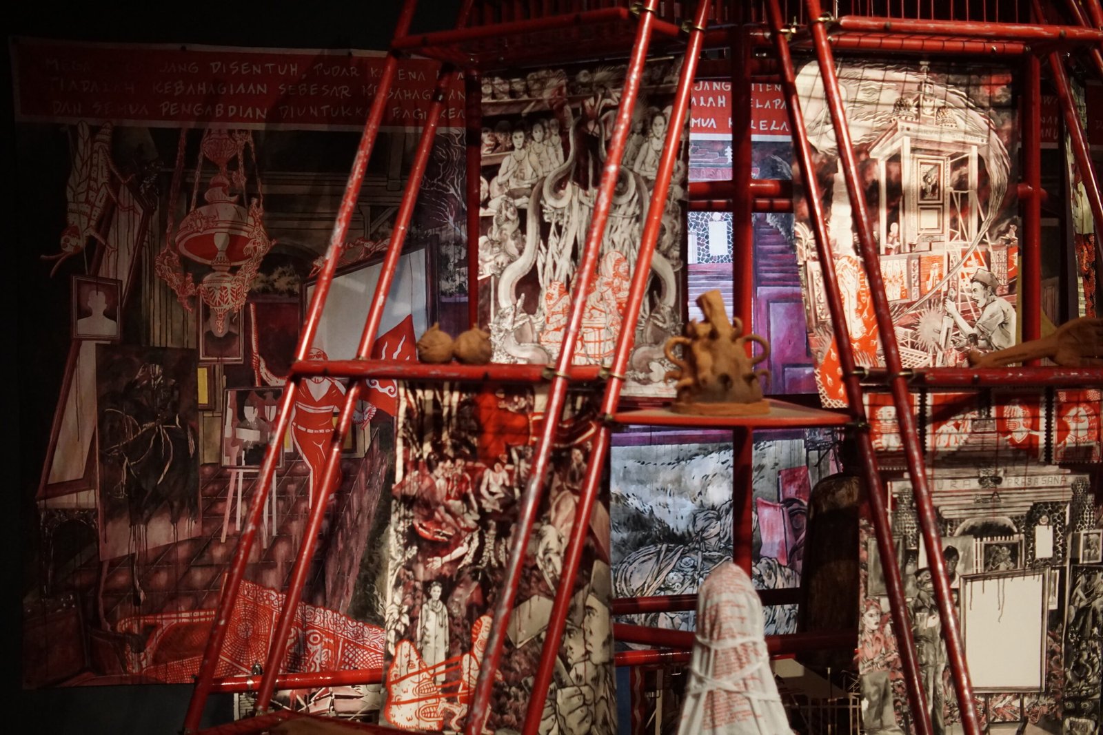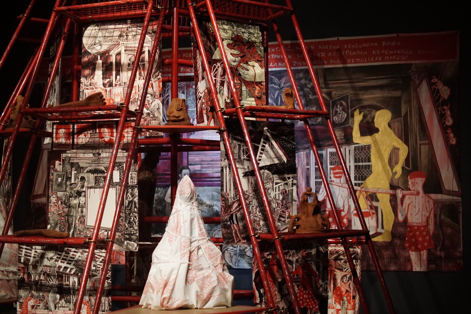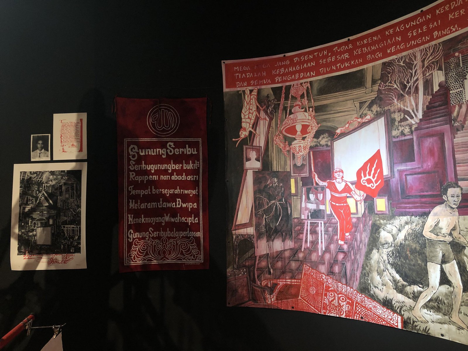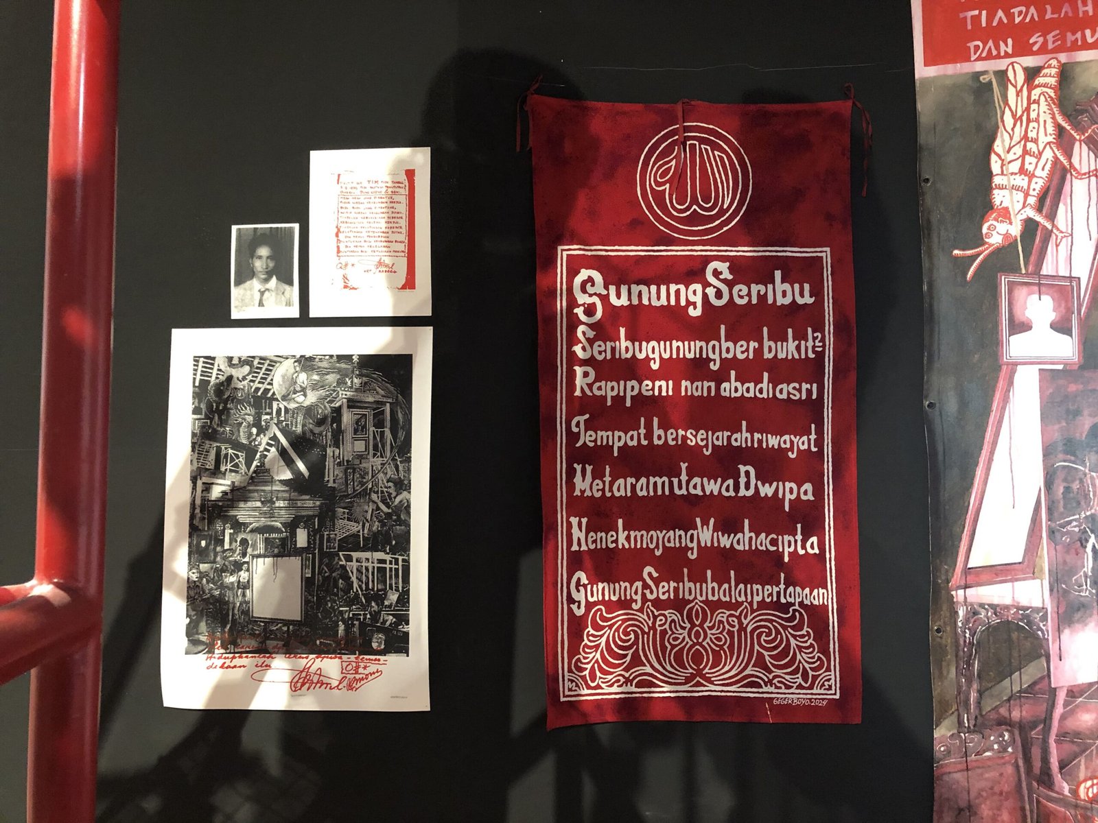 This group of young artists is interested in mythology and mystical sites that are sacred in Java. Their installation works at ARTJOG was based on research on a pilgrimage site which local community named Gunung Hargo Gumilang or Gunung Tutup in Ponjong, Gunungkidul, Yogyakarta. Their interest in this trail was sparked by a story about the role of a figure in Indonesian politics named Sukino Suprobo. Mr. Kino is known to have supernatural power and healing power, earned the nickname “a man who cares for a mountain” and during his life  timewas close to the figure of President Soekarno. This figure is also a promoter for traditional Javanese art. This memorial is sacred because apart from Mr. Kino, there is also a grave of Eyang Mangunkusumo, a direct descendant of Mangkunegara I or Prince Samber Nyawa who was known to be anti-colonial and a National Hero.
